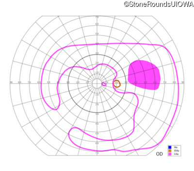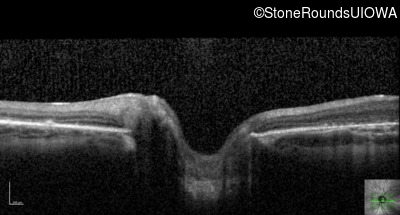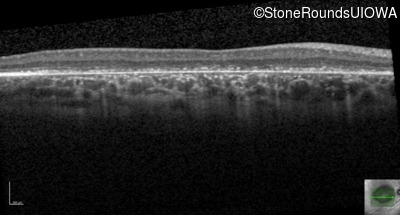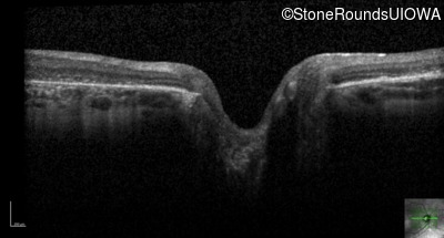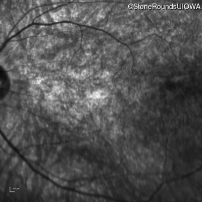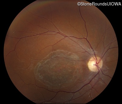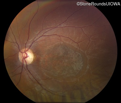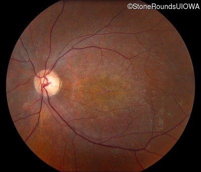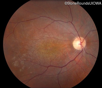 This 6 year old male first experienced a loss of visual acuity at age 5. His acuity was previously normal. He is otherwise healthy.