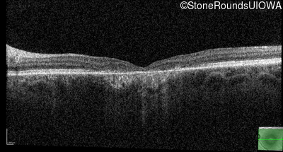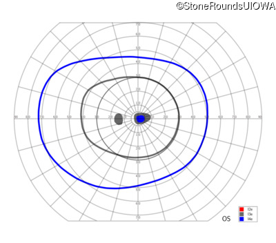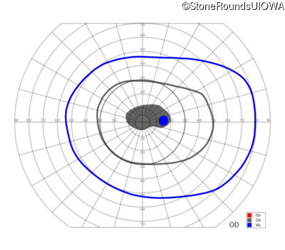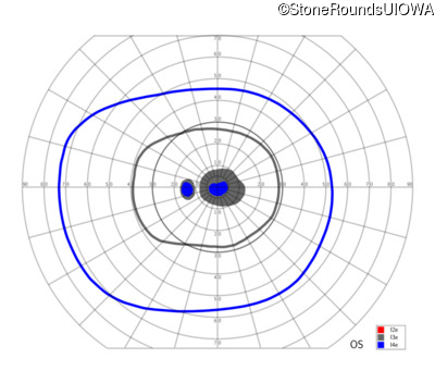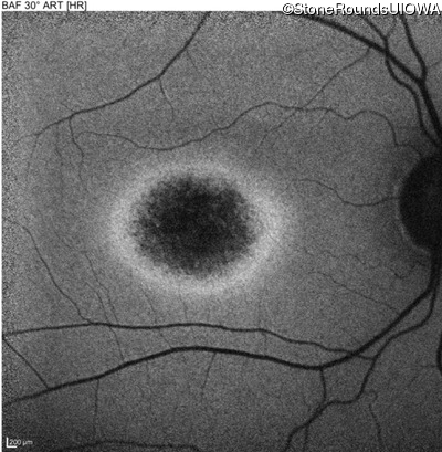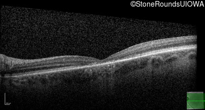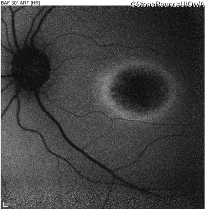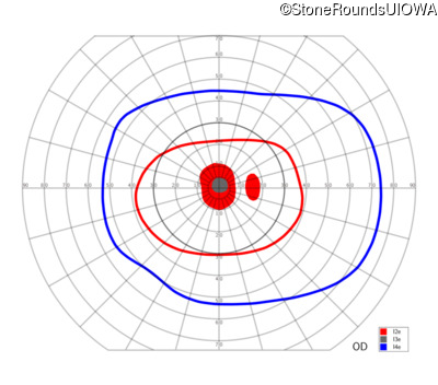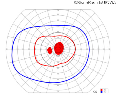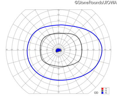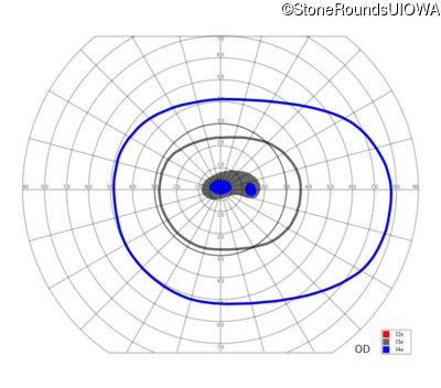 This 17 year old male was correctable to 20/30 OU when he got his first glasses at age 5. At age 13 his best corrected vision was 20/40 OU. He feels that his color vision has always been poor.