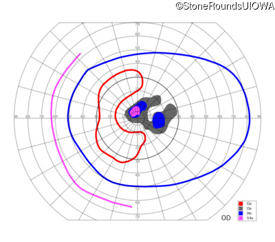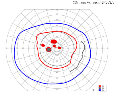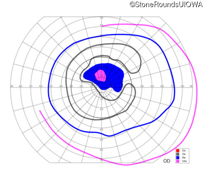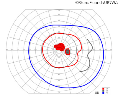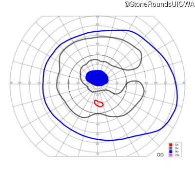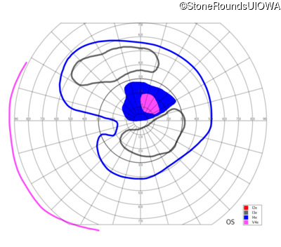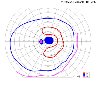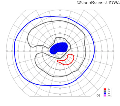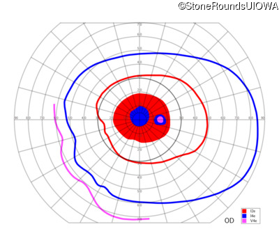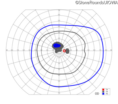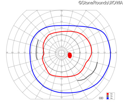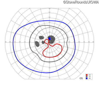 | Color Vision:     | Could see the control plate but none of 12 test plates OU. |