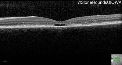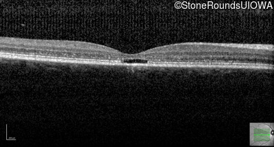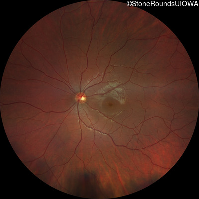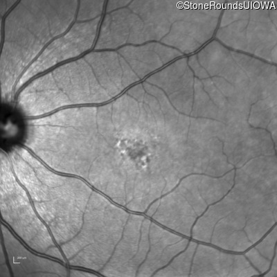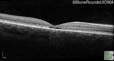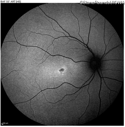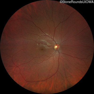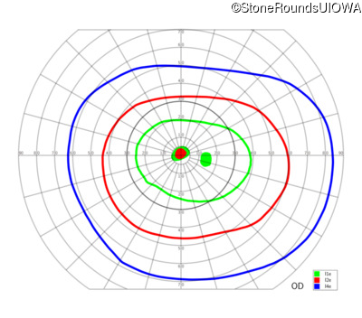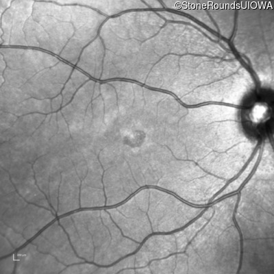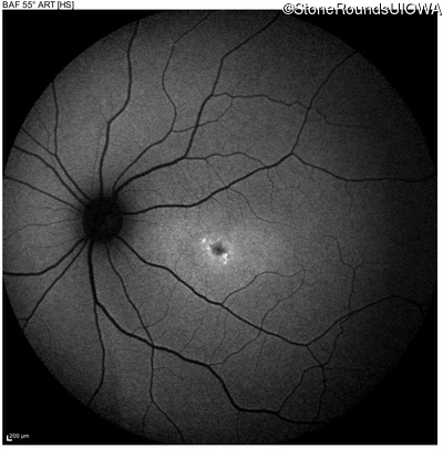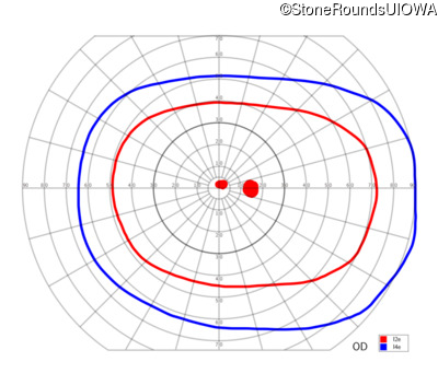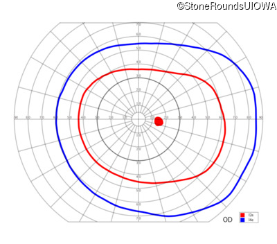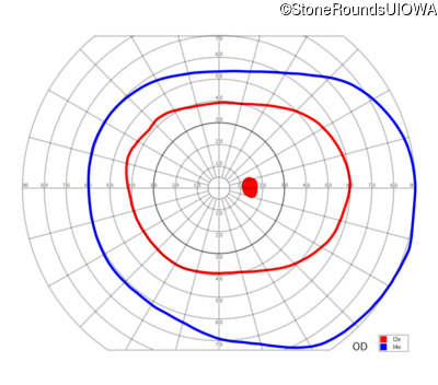 This 17 year old female first noted problems with her visual acuity around age 13 when she had trouble seeing the projector from the back of the classroom.