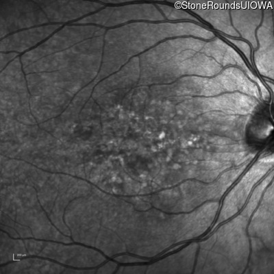 This 32 year old man has a chief complaint of mildly reduced visual acuity. He first noticed a slow recovery of acuity after exposure to bright light at age 18. His visual acuity was completely normal as a child and young adult.