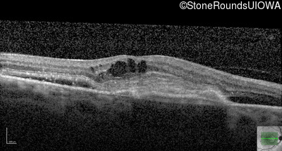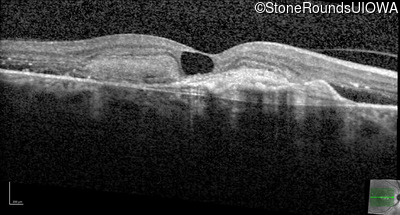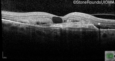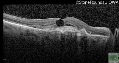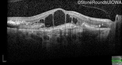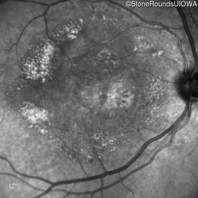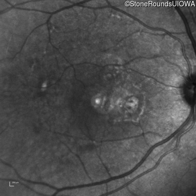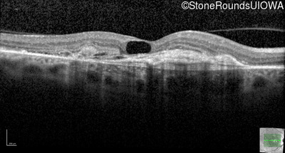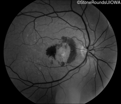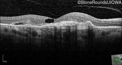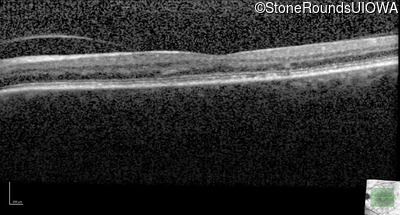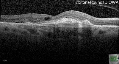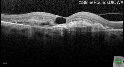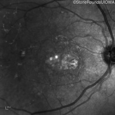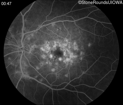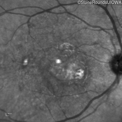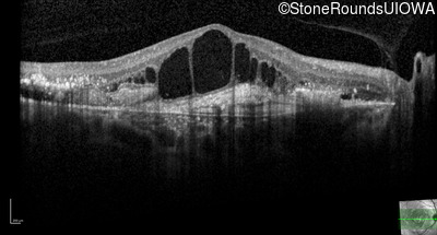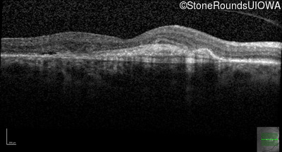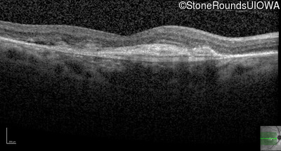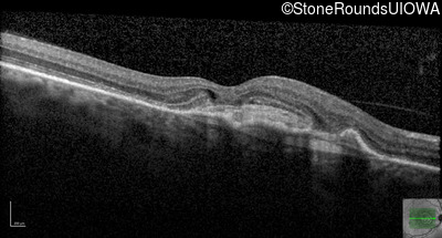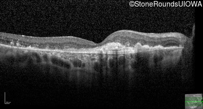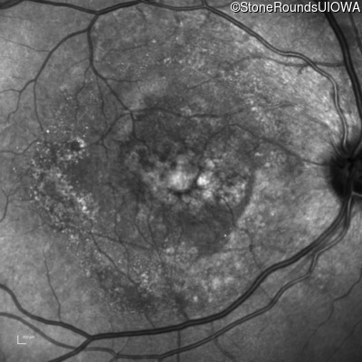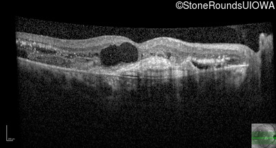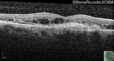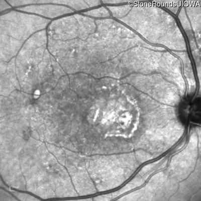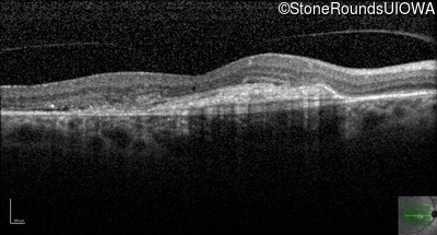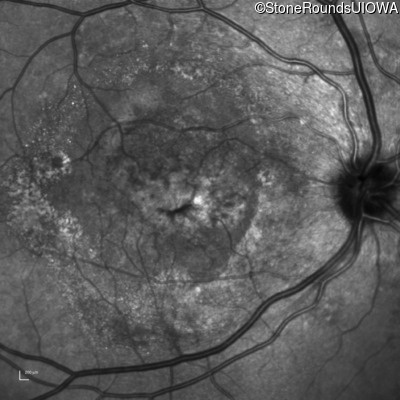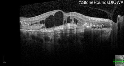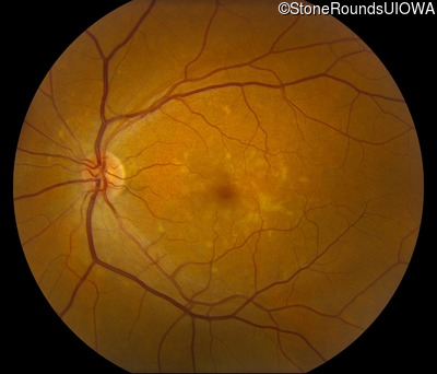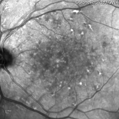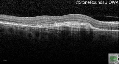 This 59 year old woman first noticed vision loss in her right eye a few months earlier. She has a cousin with Rhodopsin-associated RP.