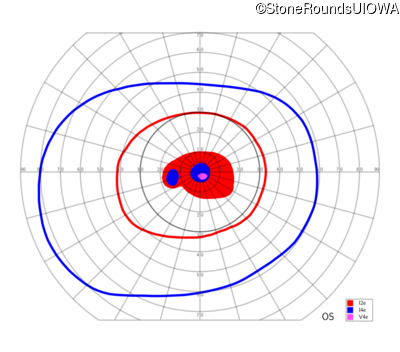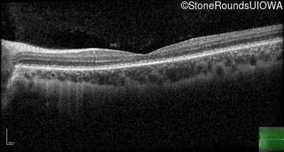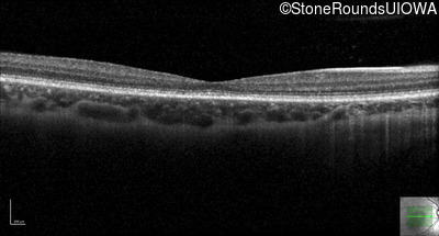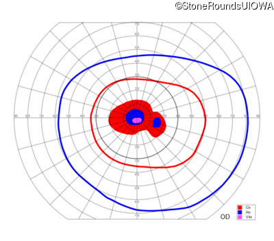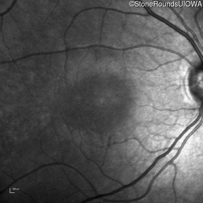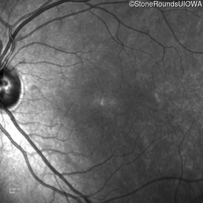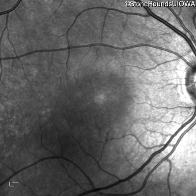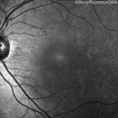 This 16-year-old female complains of difficulty tracking softballs in flight. Her parents first noticed problems with her vision at age 3 when she would turn slightly away from objects to look at them. There is no family history of vision loss.