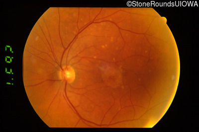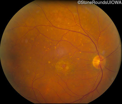 This 47 year man first experienced some decrease in his central vision about 10 years ago.