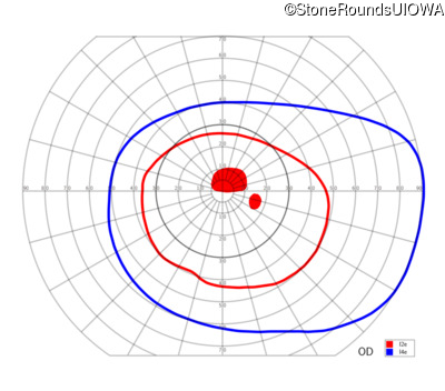 This 16 year old male was found to have 6 diopters of astigmatism OU at age 3. This was initially correctable with spectacles, but over the past year he began using his father's hand held magnifier.