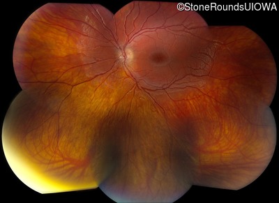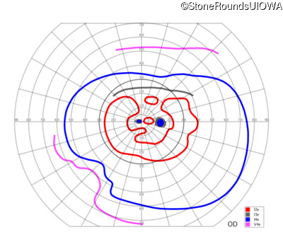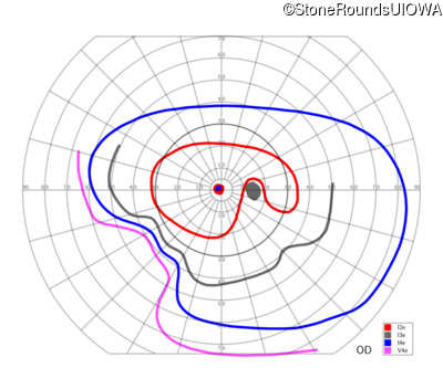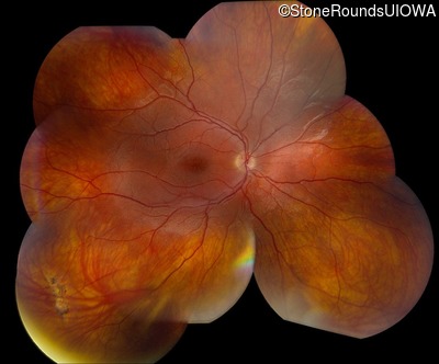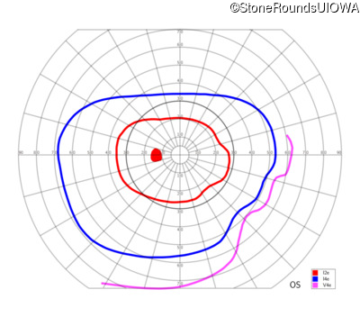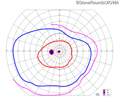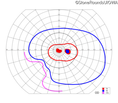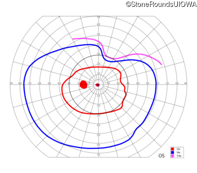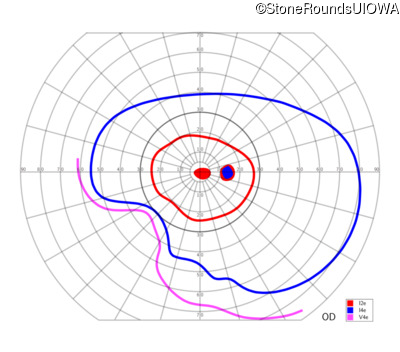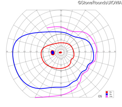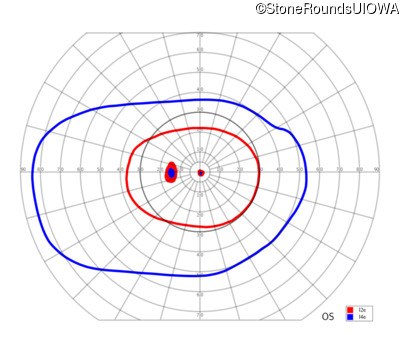 This 11 year old male was never correctable to 20/20. He received glasses at age 1 for esotropia. His refraction is +4.25 +2.00 x 105 OD and +2.00 +2.00 x 80 OS.