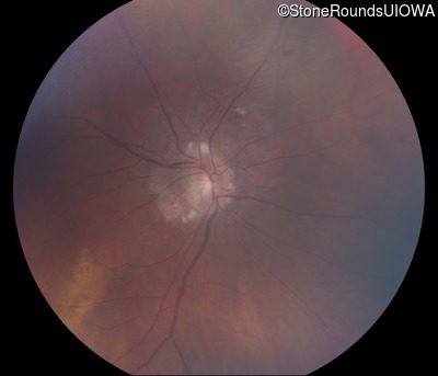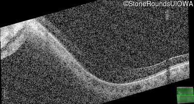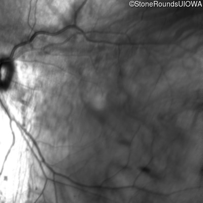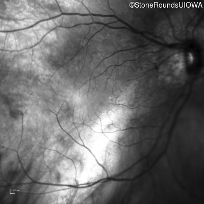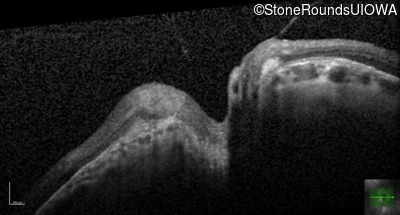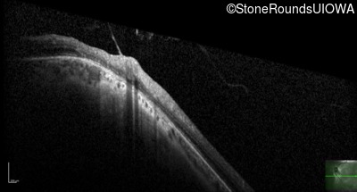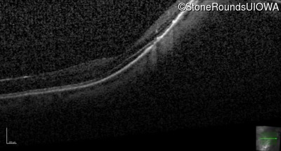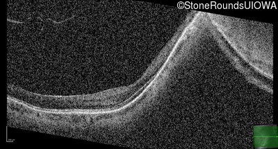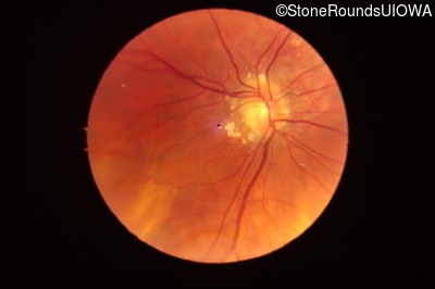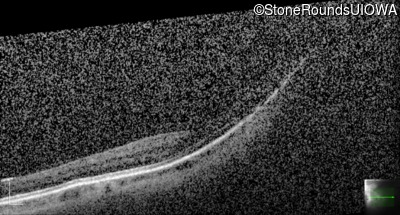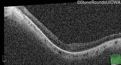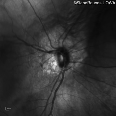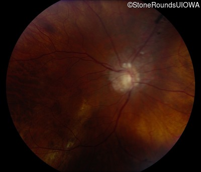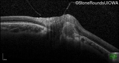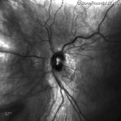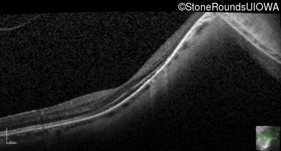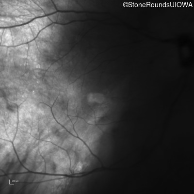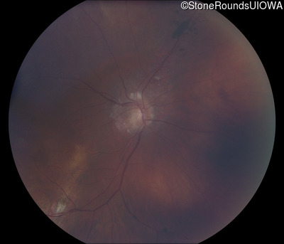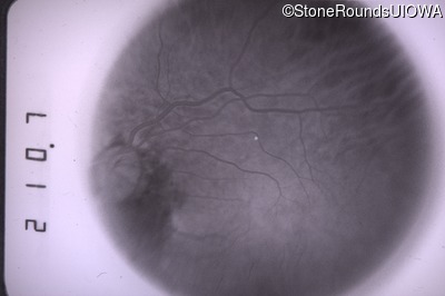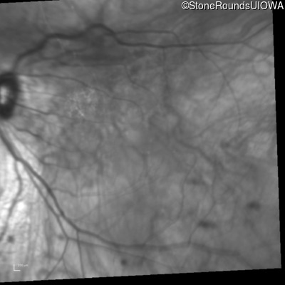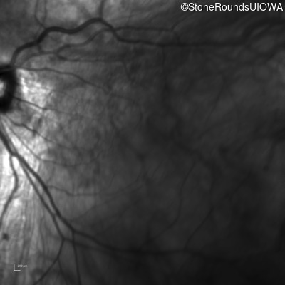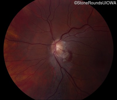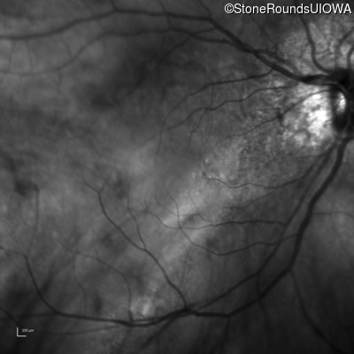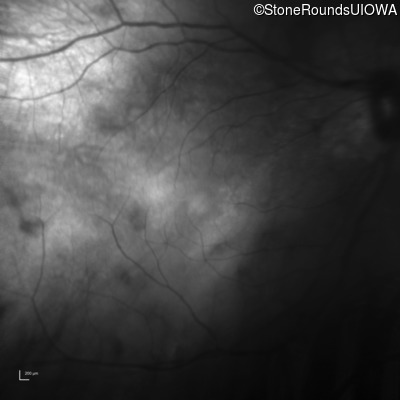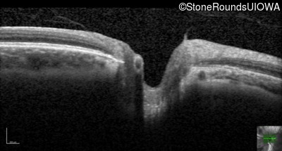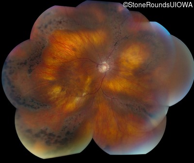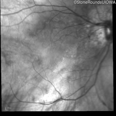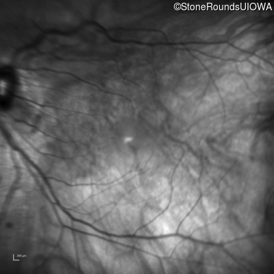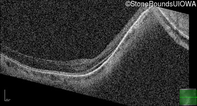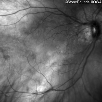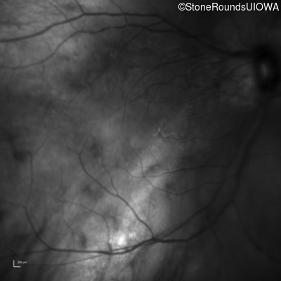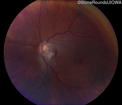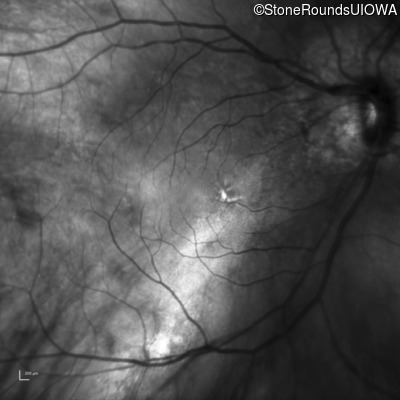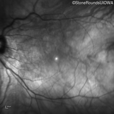 This 41 year old woman was highly myopic as a child and experienced a rhegmatogenous retinal detachment OS at age 20.