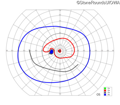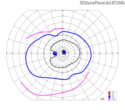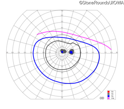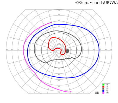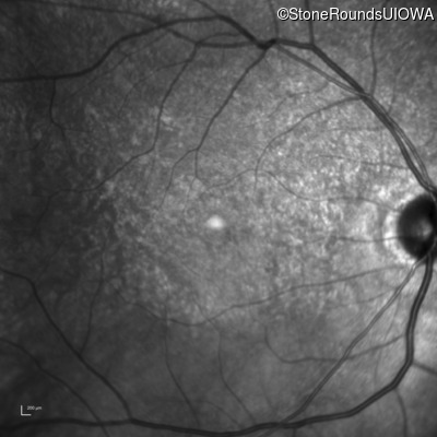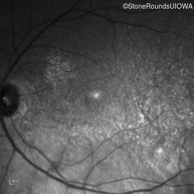 This 65 year old man has had nystagmus since birth. His acuity was never better than 20/80 in either eye. He has significant photophobia in normal office light but sees normally in very dim light. His color vision is also poor. He cannot recognize any of the Ishihara color plates.