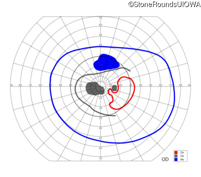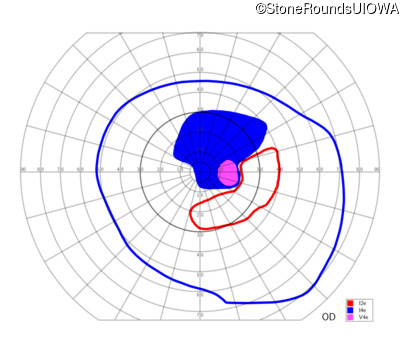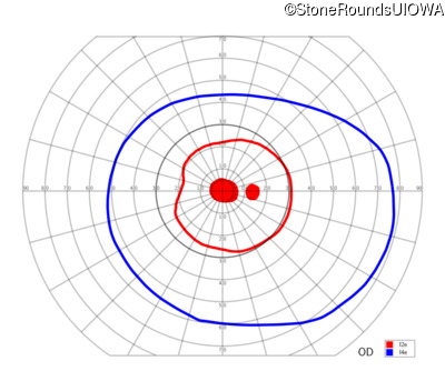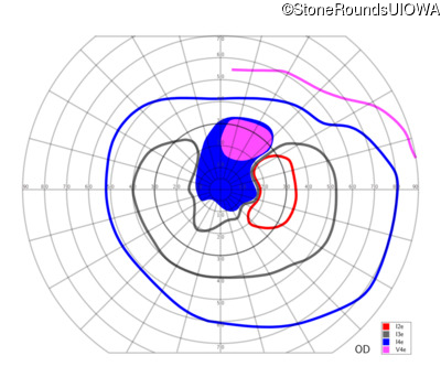 Goldmann Visual Field - Right - 20/63 +2