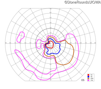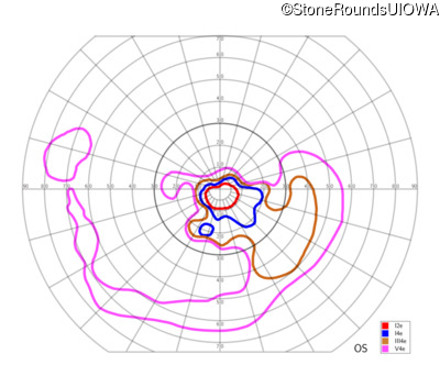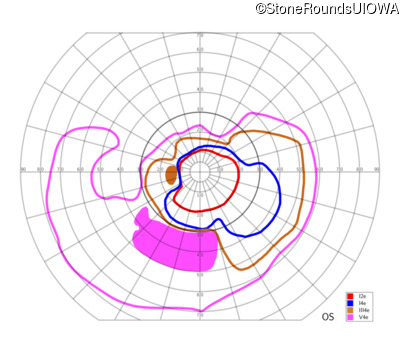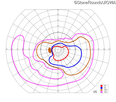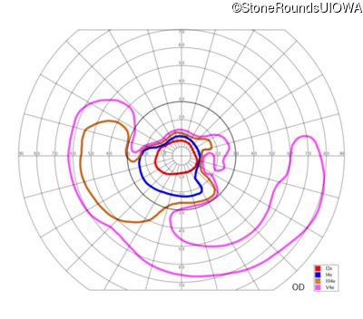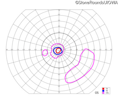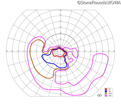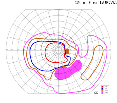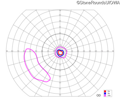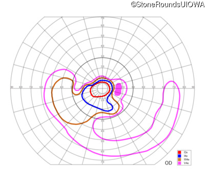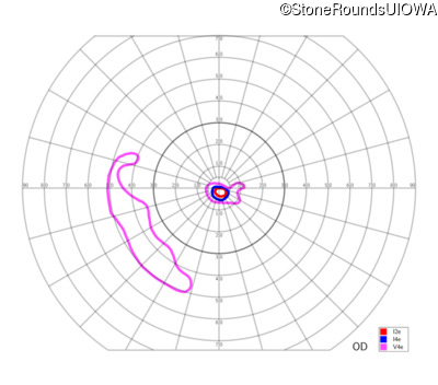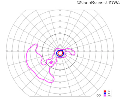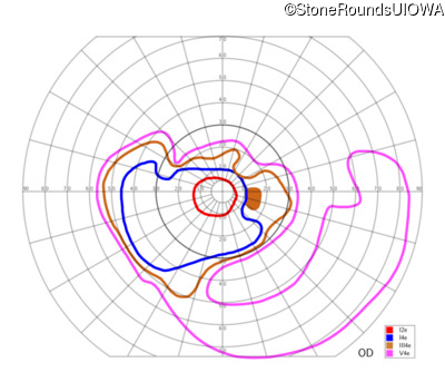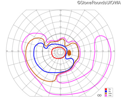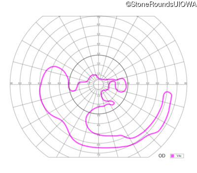Goldmann Visual Field - Right - 20/25 -2 sc