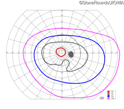 Goldmann Visual Field - Right - 20/125 +2 sc