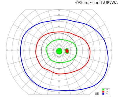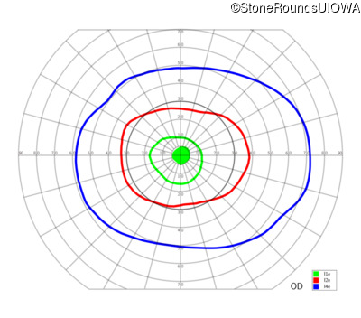 Goldmann Visual Field - Right - 20/100 -1 sc