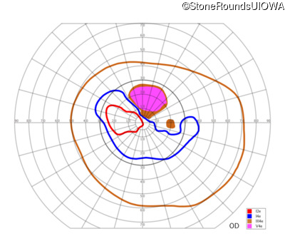 Goldmann Visual Field - Right - 10/200 -2 sc