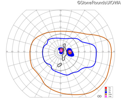 Goldmann Visual Field - Right - 10/120 +1 sc