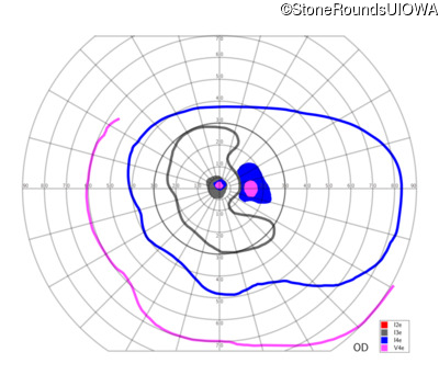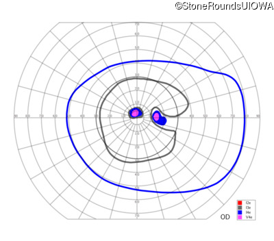Goldmann Visual Field - Right - 10/100 -2 sc
