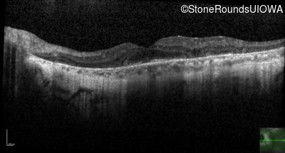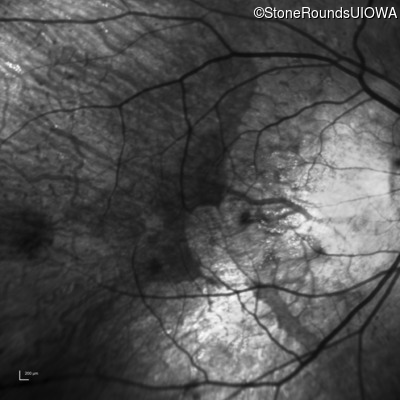 This 46 year old man first had difficulty driving at night in his mid-thirties. Clinically focused genetic testing for Choroideremia was negative.