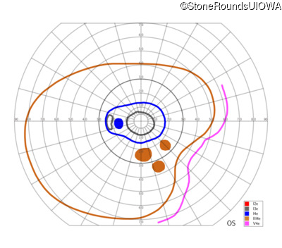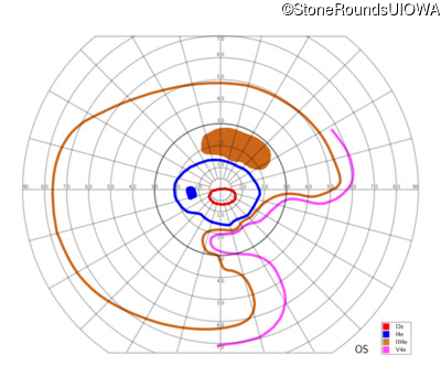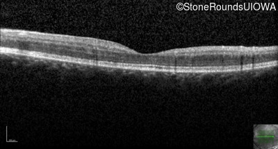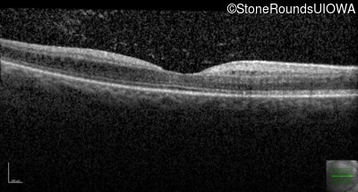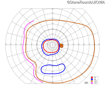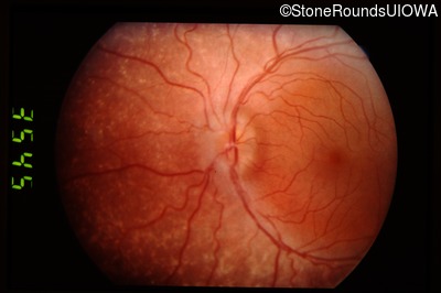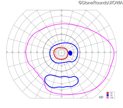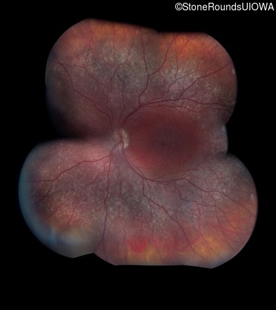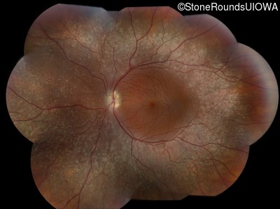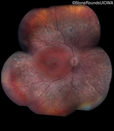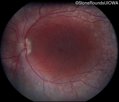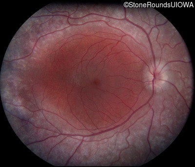 This 18 year old woman has had slightly subnormal acuity and high hyperopia since age 5. Her symptoms of night blindness are weak at best.