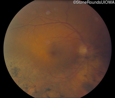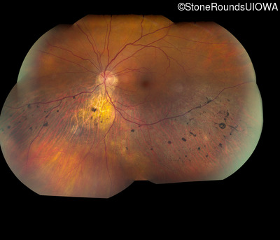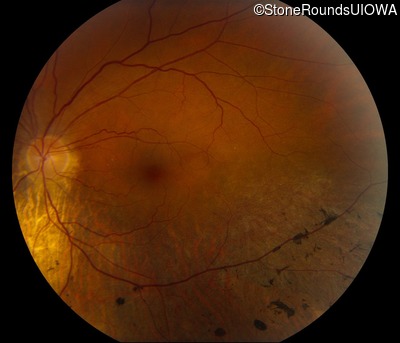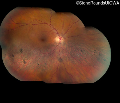 This 57 year old woman has had poorer night vision than her friends for her entire life. At age 51, her worsening night vision caused her to seek medical attention. She has always been correctable to 20/20 OU.