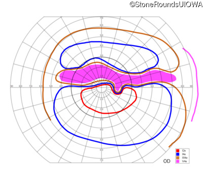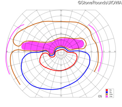Color Vision:     14/14 pseudoisochromatic plates OU