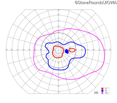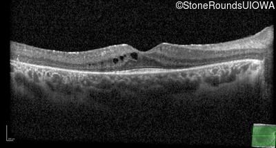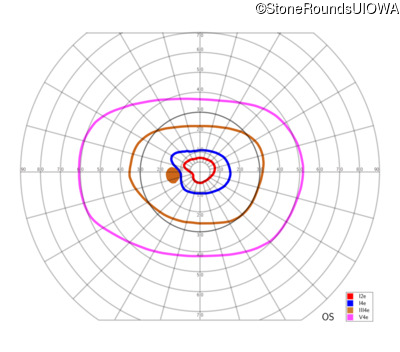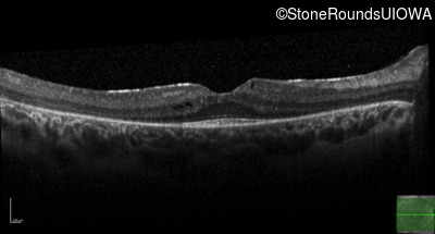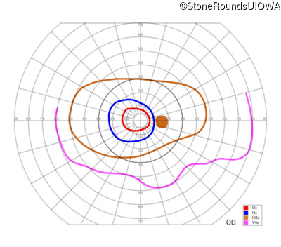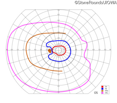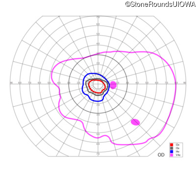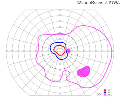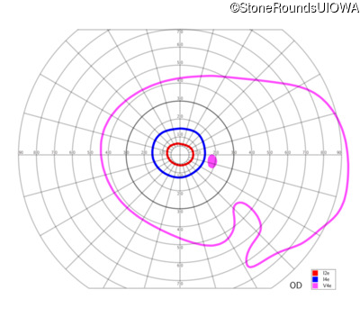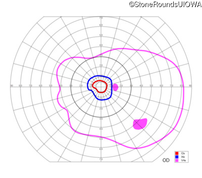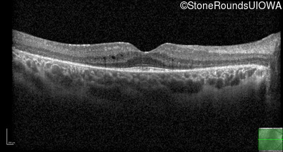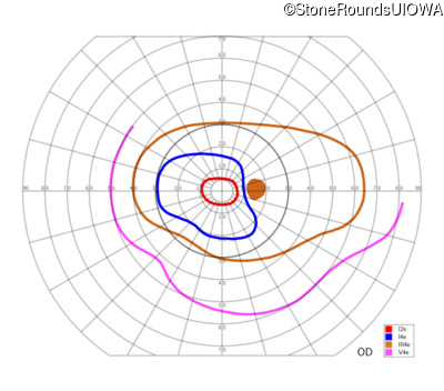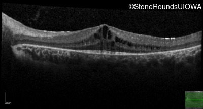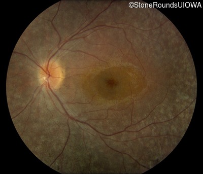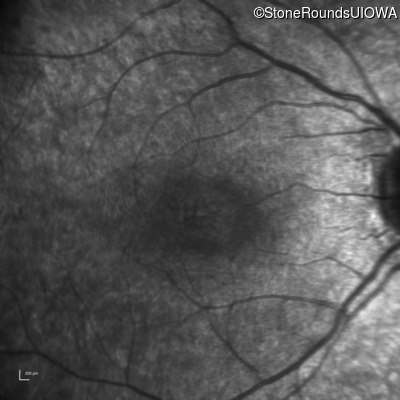 This 7 year old girl has had very poor vision in dim light and slightly subnormal acuity her entire life.