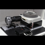 • High-throughput 35 mm slide digitizing device. The greatest challenge of digitizing the tens of thousands of mounted 35mm slides in the departments photofile collection was mechanically handling slides of various ages and thicknesses without jamming. The Kodak carousel projector has the lowest jam rate of any slide handling device ever made. These projectors were fitted with a white-balanced LED light source and a 35 mm camera to digitize the entire inherited retinal disease collection of the department dating back to the early 1960s.