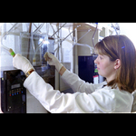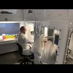 • Budd Tucker works in a temperature, gas and humidity controlled Biospherix cabinet to feed human stem-cell-derived photoreceptor precursor cells without subjecting them to injurious environmental variations associated with conventional cell incubators (2018).