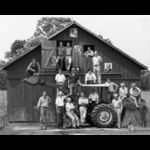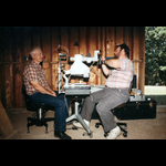 • Bill Ward (right) photographs a research subject in his family's dirt floored pole barn (1988).