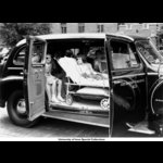 • A hospital car transports ophthalmology patients to and from the clinic (1941). Courtesy University of Iowa Special Collections.