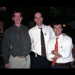 • Celebrating John Fingert's successful thesis defense. Left to right: Brian Nichols, Ed Stone, John Fingert (2000).