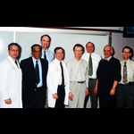 • Left to right: Tom Weingeist, P. Namperumalsamy, Ed Stone, Culver Boldt, Dick Weleber, Jim Folk, Alan Bird, Andrew Lotery (1997).
