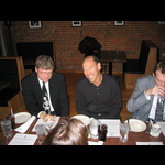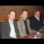 • An early Advisory Board dinner at the 126 restaurant in downtown Iowa City (2000). Left to right: Steve Russell, Leo Hauser, Rob Mullins.