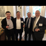 • Celebration of Budd Tucker's investiture as the Howard F. Ruby Chair of Human Retinal Engineering in UI President Bruce Harreld's home in Iowa City. Left to right: Gary Seamans, Paul Rosenthal, Culver Boldt, Marty Carver (2019).