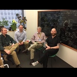 • Chalk talk in Mullins' office. Left to right: Rob Mullins, John Fingert, Steve Russell, Budd Tucker (2016).