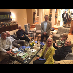• Advisory Board meeting in Paul and Carla Rosenthal's home in Washington, D.C. (2018). Foreground, left to right: J Nelson, Brian Walker, Steve Dezii, Paul Rosenthal, Julia Furrow, Mary Stone, Leo Hauser. Background, left to right: Allie Rosenthal, Pete Matthes, Ira Rosenmertz.