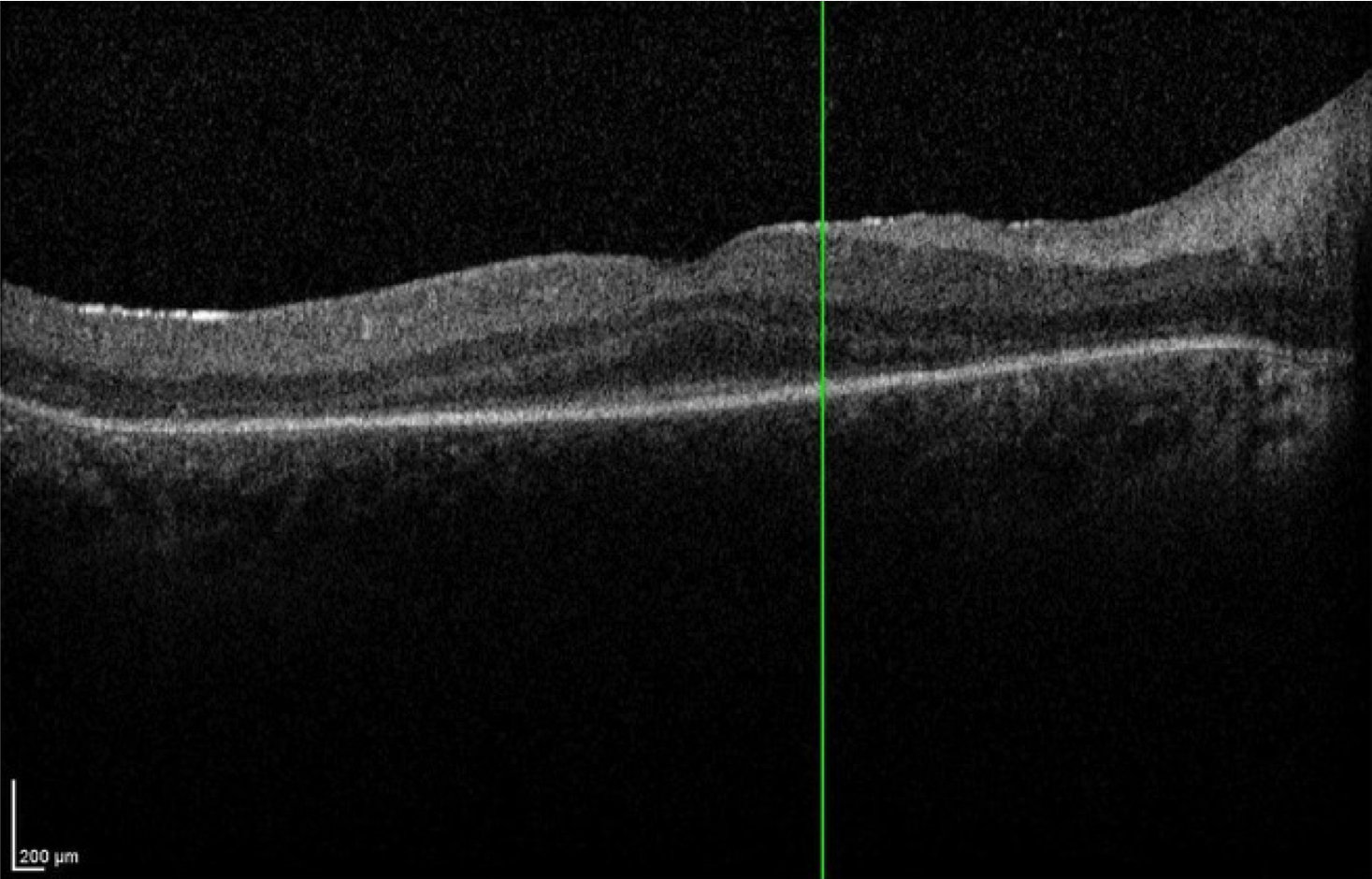 Case 13 is a 15 year old male was noted to have abnormal vision at 3 months of age. He had large amplitude nystagmus, did not respond to his parents faces and would not follow any type of toy or light that was put in front of him. His pupils constricted when the room lights were turned off and dilated when they were turned on. Retinoscopy revealed over seven diopters of hyperopia and electroretinography detected no responses under any stimulus conditions. The best acuity ever recorded has been bare light perception. His parents have normal vision.
